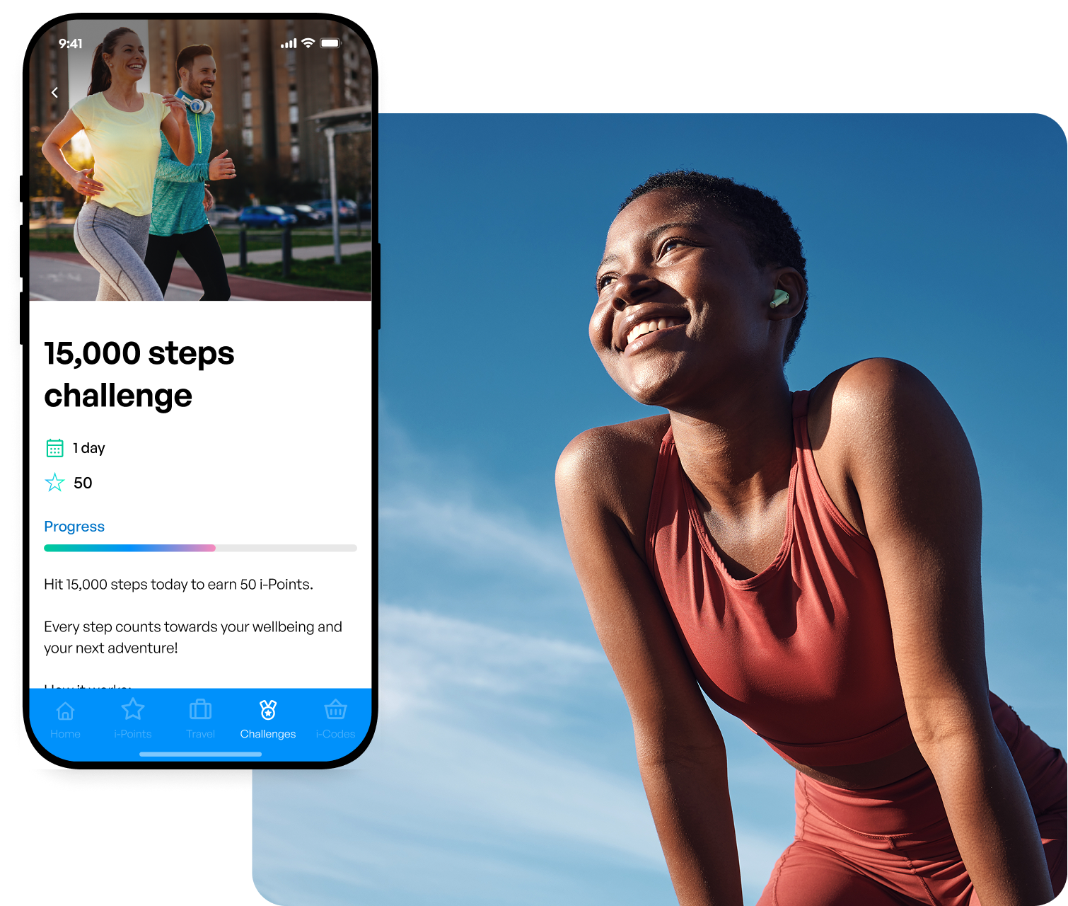 Her boss enrolled the company in incentifi and now she earns i-Points for her daily steps, workouts and mindfulness challenges.